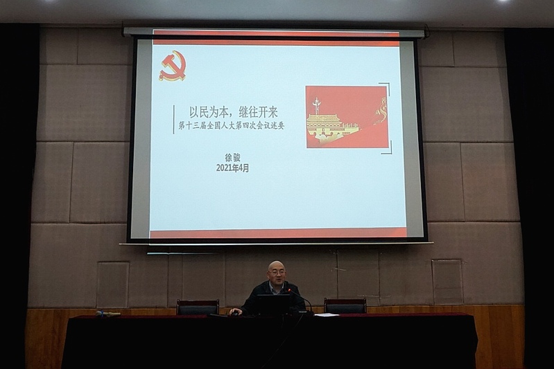 为深入学习贯彻十三届全国人大第四次会议精神,4月14日下午,36365线路检测中心no1党委邀请法政学院副院长徐骏博士以“2021年全国人大热点解析” 为题,向学院全体师生党员上了一堂学习宣传课。活动由36365线路检测中心no1党委书记朱庆峰主持。