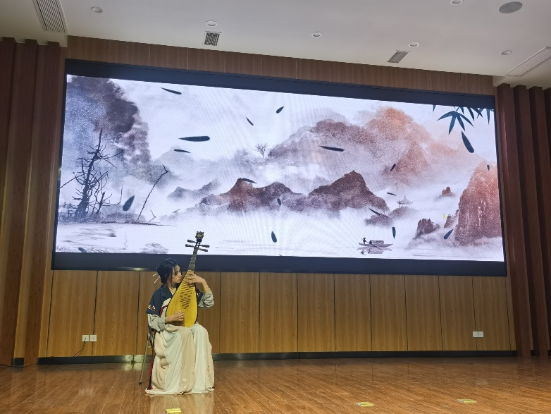才艺表演环节,同学们表演了古典舞、太极、乐器、剪纸、书法等中华传统才艺。王子涵的独舞《唐印》让观众仿佛置身于河南卫视“奇妙游”的演出现场;周子吟和方霖菲同学的竹笛、葫芦丝二重奏,曲调婉转悠扬;孙麒凯、陈畇如、刘皓文的《相剪而太极》,剪纸表演与太极功夫的结合,演绎了刚与柔的完美调和;李文清的舞蹈《落花情》,一提一沉间轻盈流转,风韵优雅;李佳怡的书法《笔落方兴》,尽展华夏文明绚丽的书法文化;俞梦涵同学一曲琵琶表演《阳春白雪》,清新流畅…同学们各显神通,展现出汉语国际教育专业学生多才多艺的风采。评委老师们对同学们不凡的才艺表演做出了高度评价。